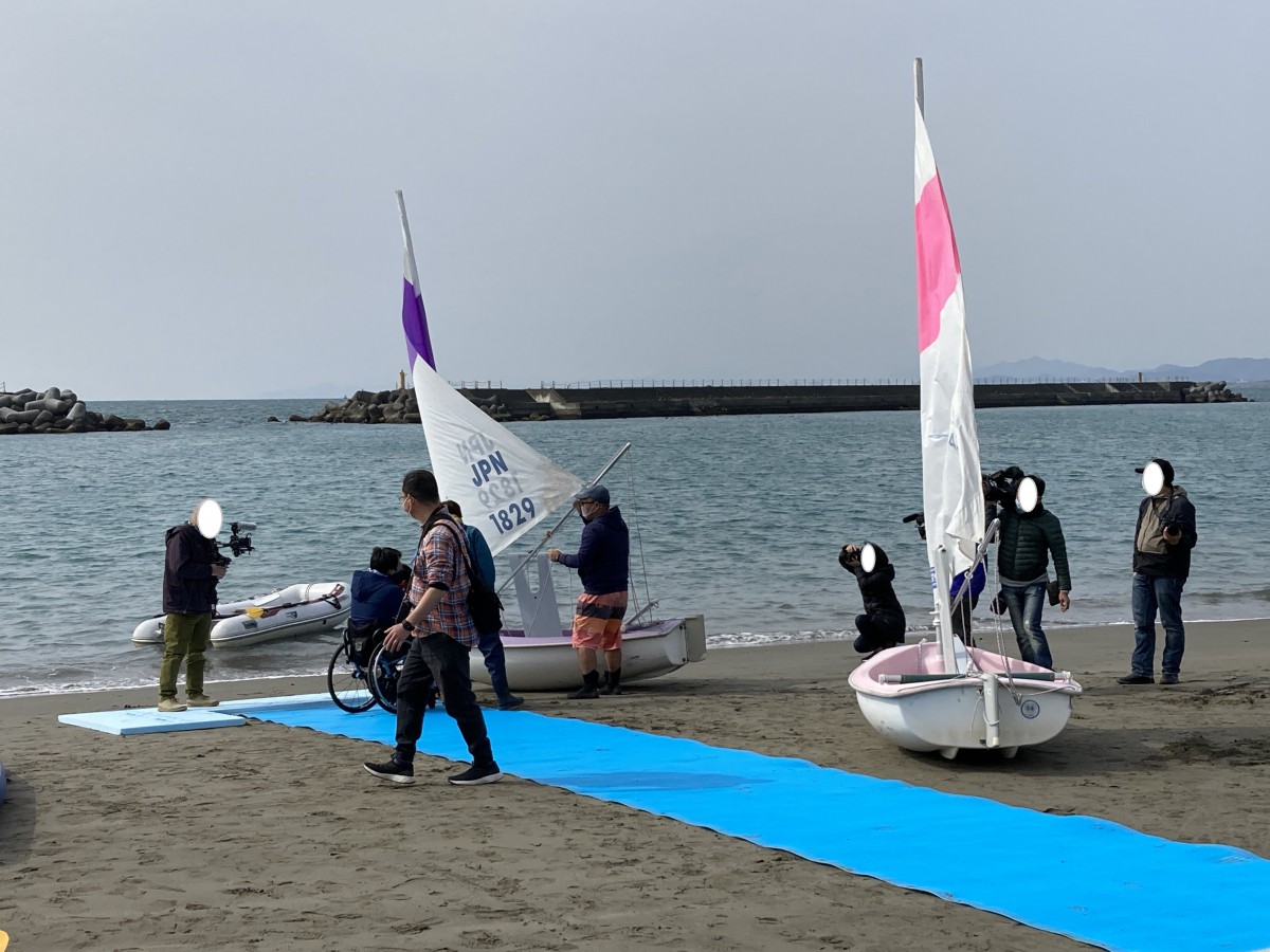 ユニバーサルマット 2枚あり ヤ・シィパーク海水浴場で定期的にユニバーサル・ビーチを開設し海水浴の補助を行っている