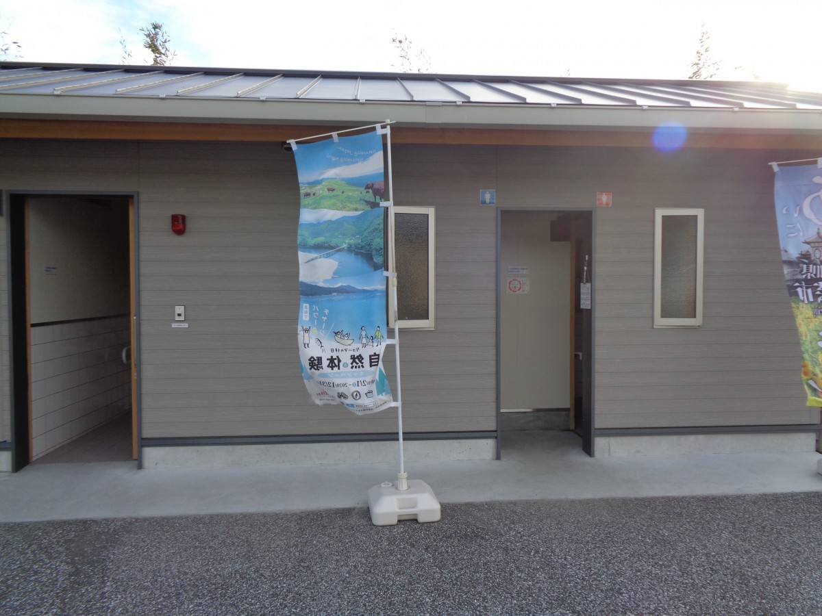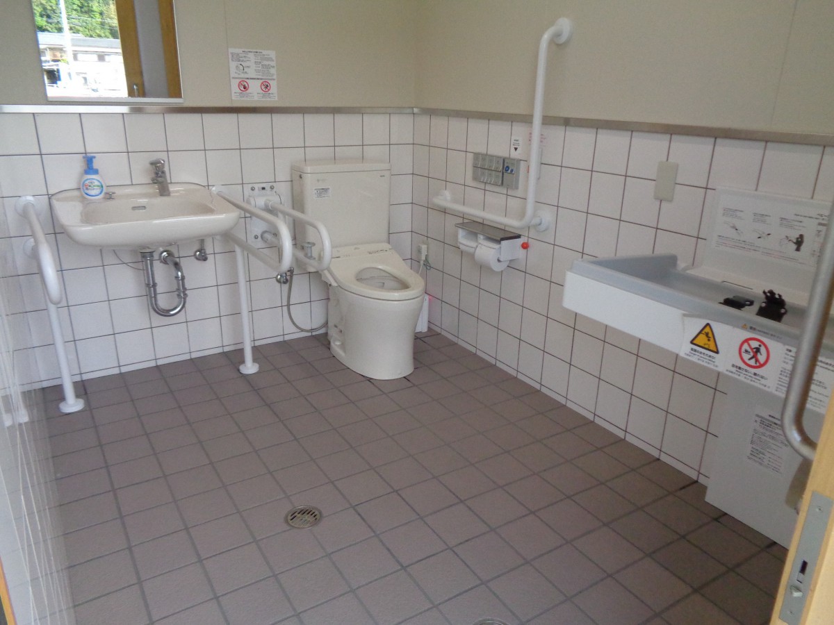 案内所に隣接するトイレ棟には車いす対応トイレ、一般共用トイレ男性用・女性用あり