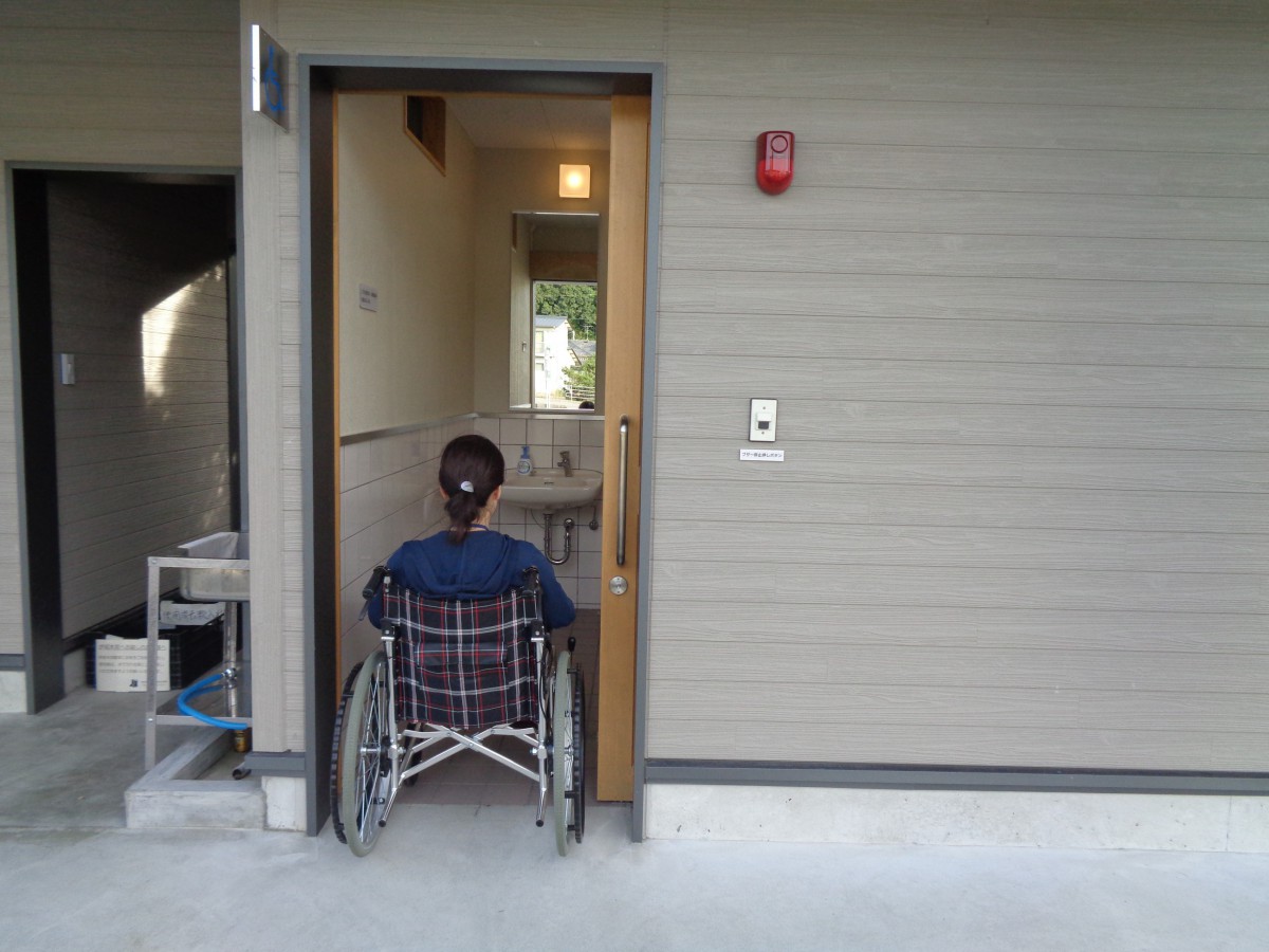 車いす対応トイレ入口 スライド戸 入口幅79センチ