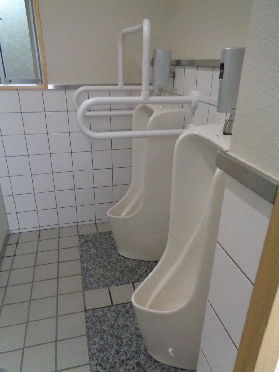 男性用一般トイレ 手すり付き小便器1基 洋式1室あり 温水洗浄便座 操作パネル壁面