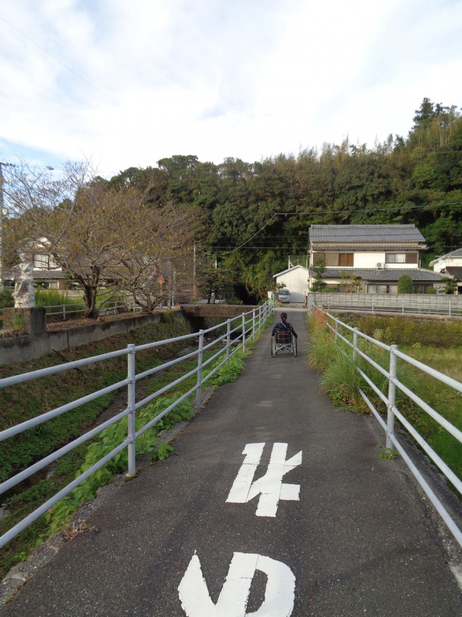 駐車場から国道と市道を通って行くため、車の往来には注意して通行する