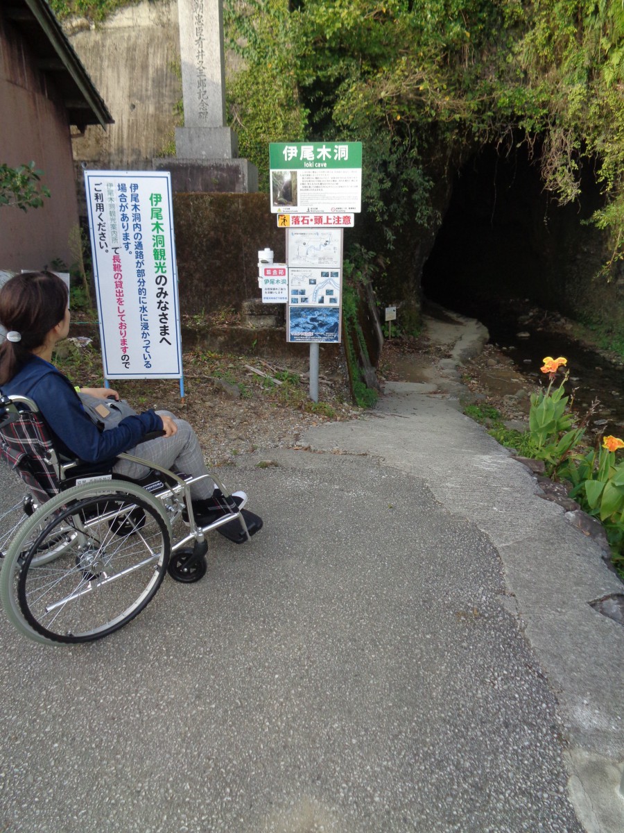 車いす利用者、歩行器利用者は散策が厳しい 洞の入口前の説明看板や周辺の観光案内板などを見たり、洞内からの冷たい風や雰囲気を感じることはできる