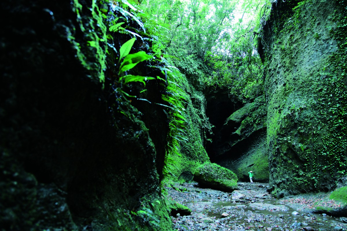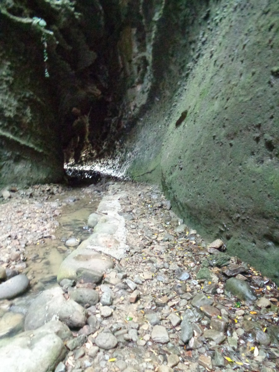 洞内は自然のままの状態で、足元は大きな石や水が流れている