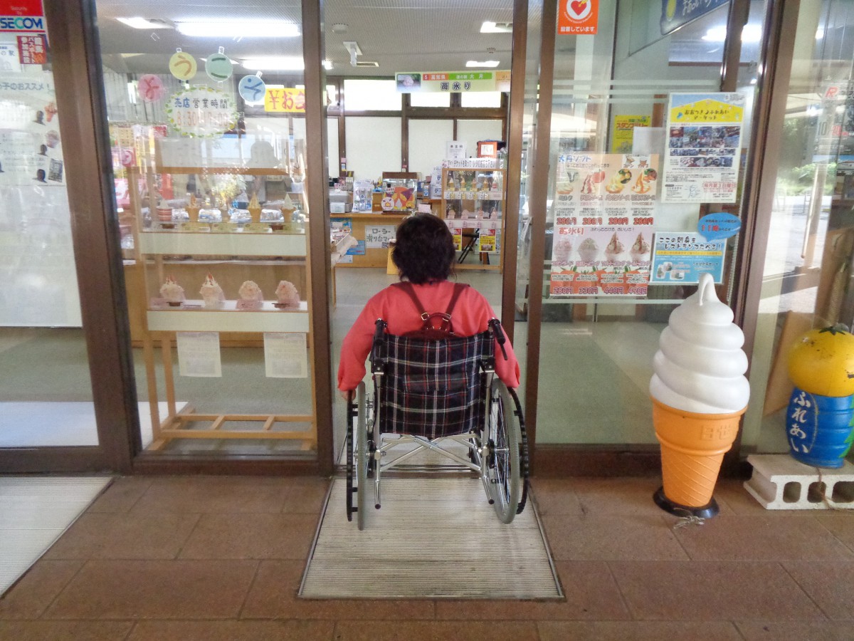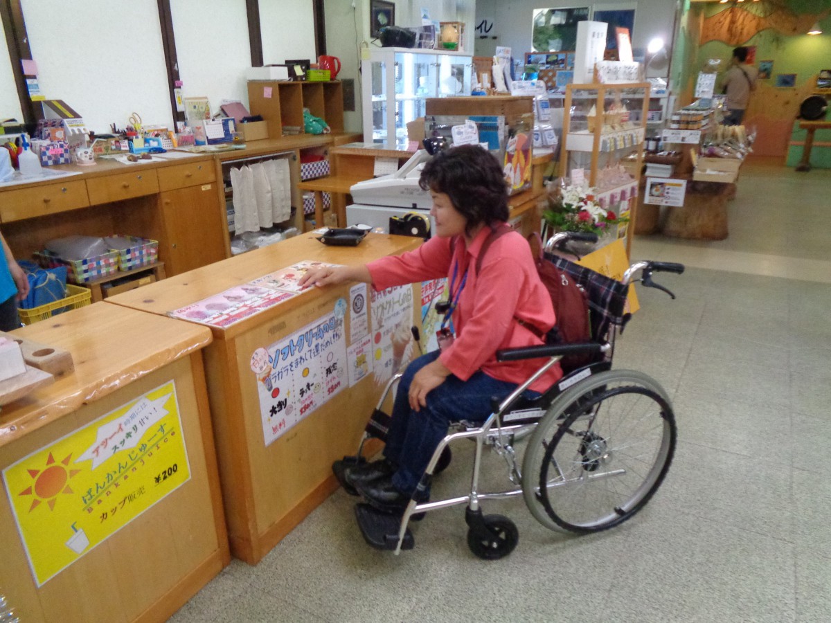 ふるさとセンター、売店の入口 自動ドア テイクアウトデザート、土産物など販売している