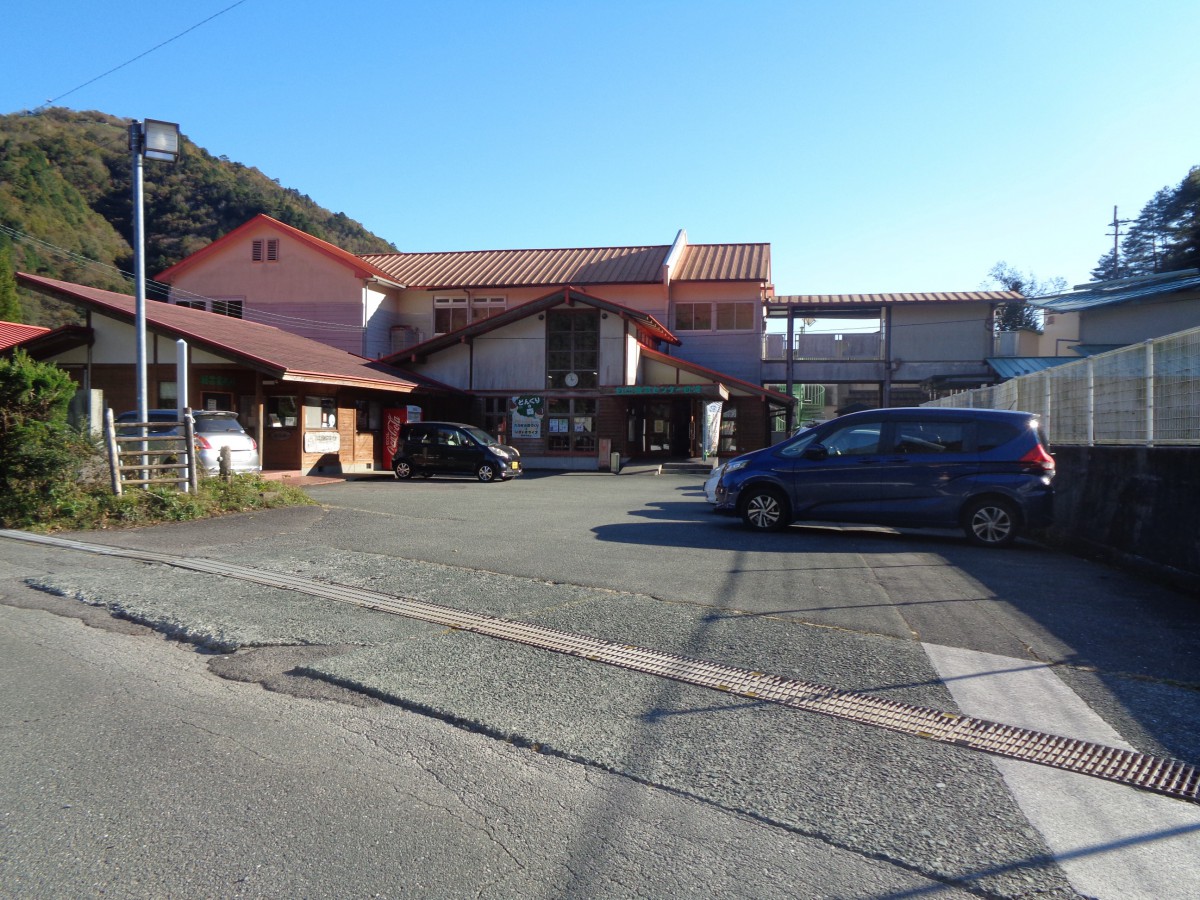 レストランの奥に田舎体験施設とビニルハウス型のBBQハウス(300人収容可能)あり 入口前は未舗装
