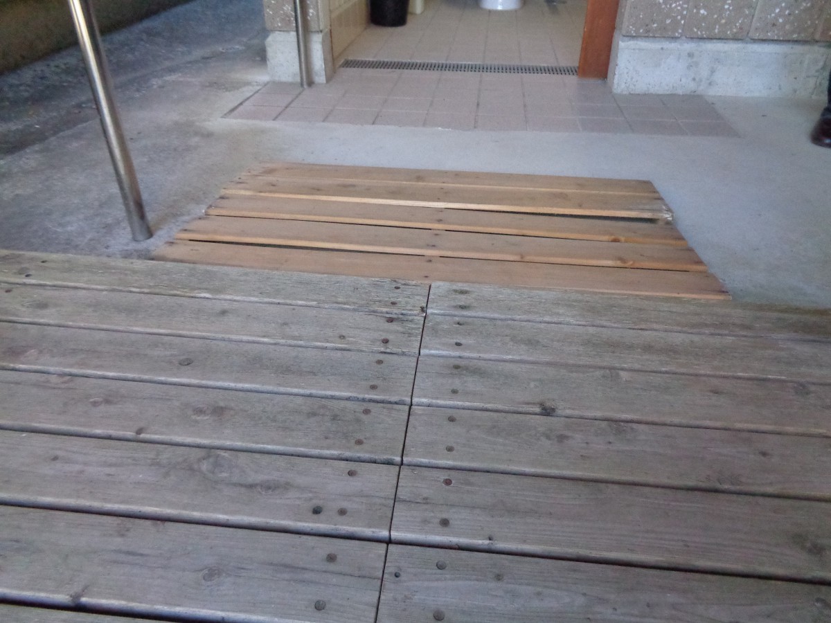 レストラン 里の茶屋 入口段差12センチ×2段 スロープ無し 開き戸 入口幅141センチ ドア下段差なし