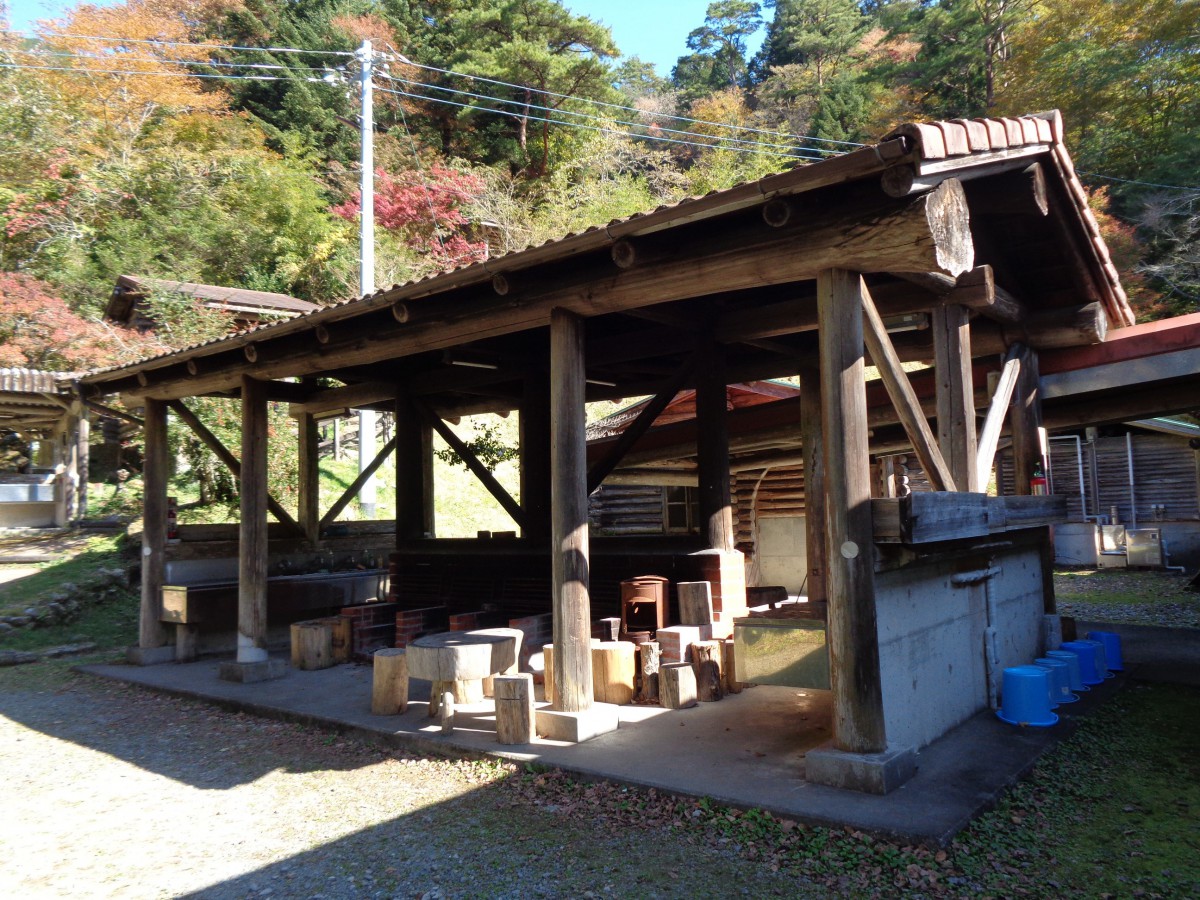 バーベキュー棟 バームクーヘンづくり体験など行っている 車いすでも利用可能だが手前が砂利道のため介助が必要
