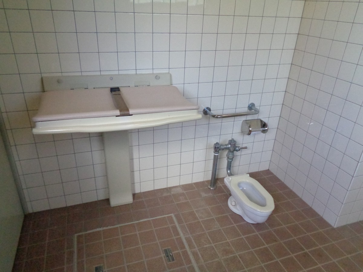 お祭り広場の車いす対応トイレ設備 ベビーシート 子ども用便器あり