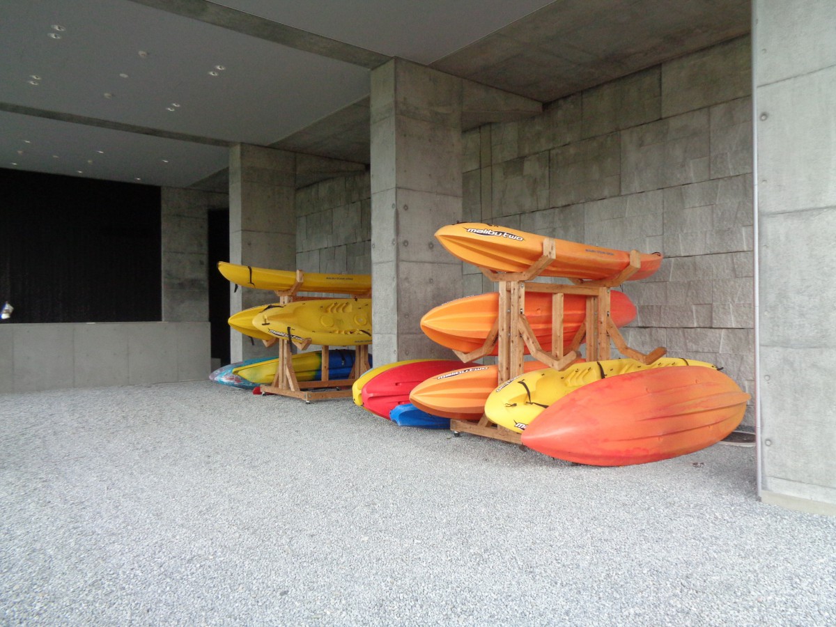 カヌー体験の設備があるのは1階 2階から階段で降りる