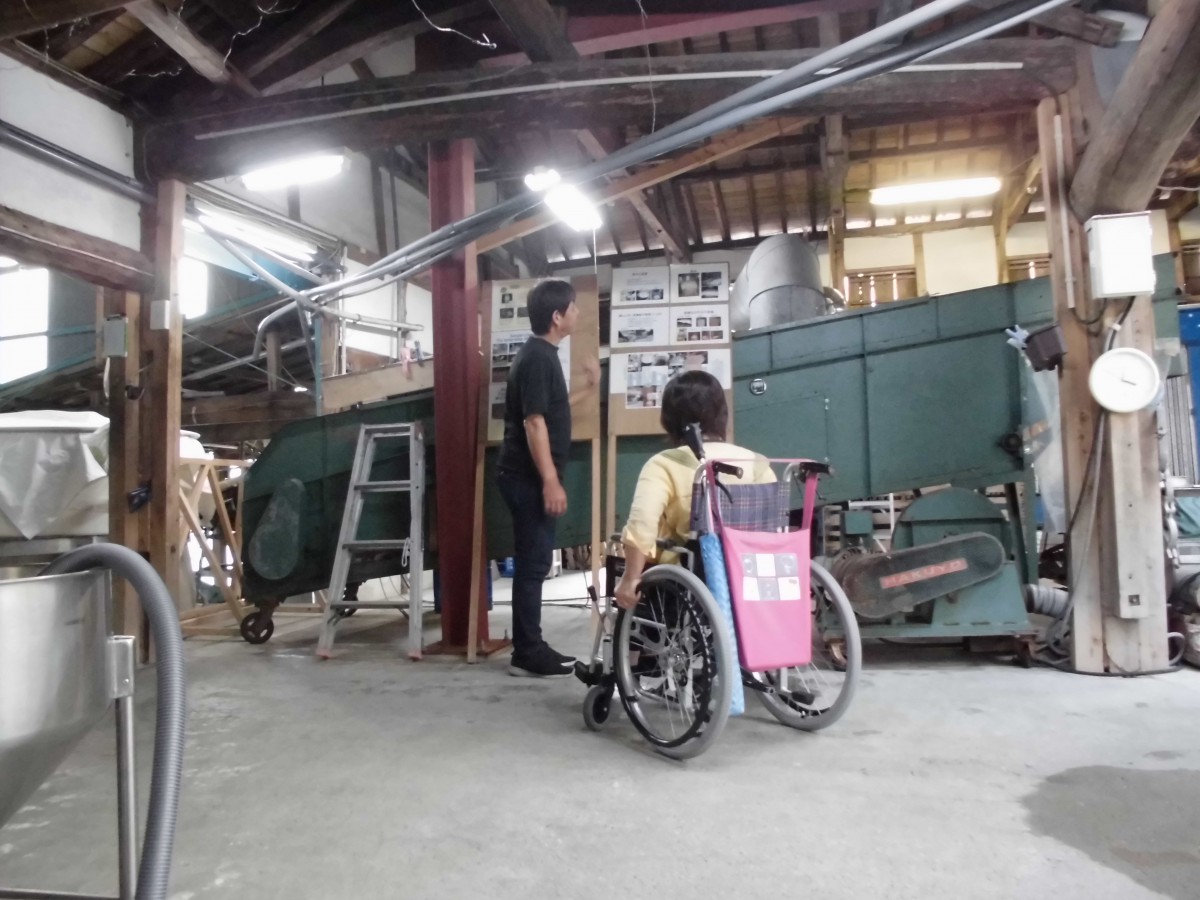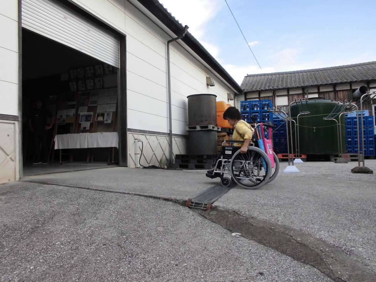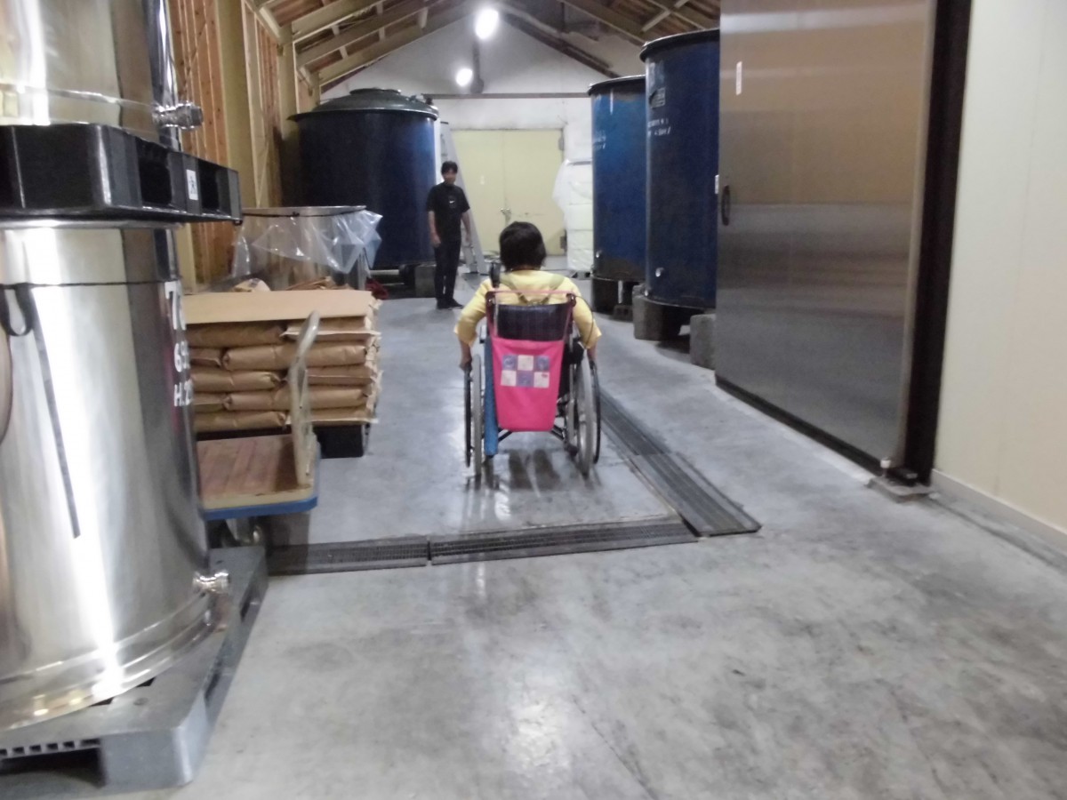酒蔵内 床面はフラットで通路幅も十分にある 水で濡れている時もあるので注意