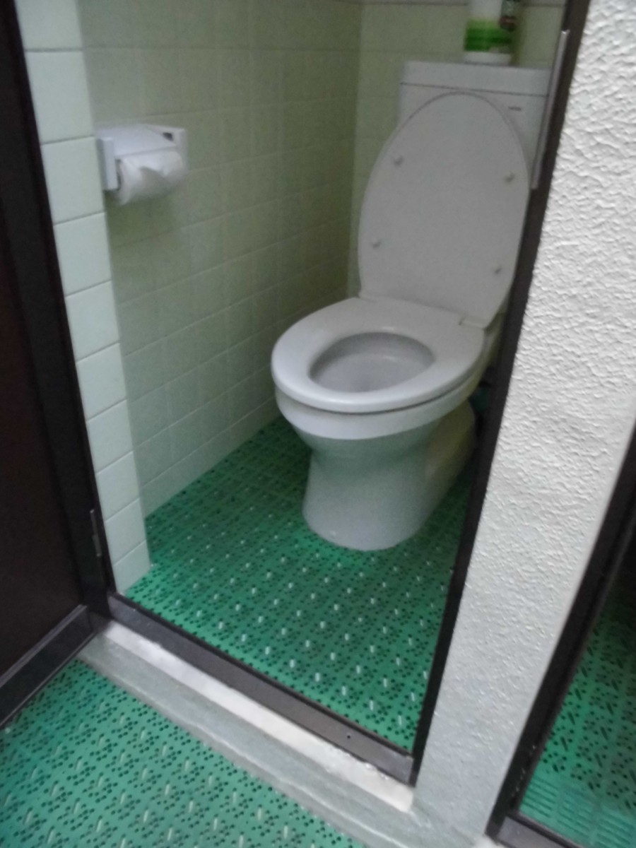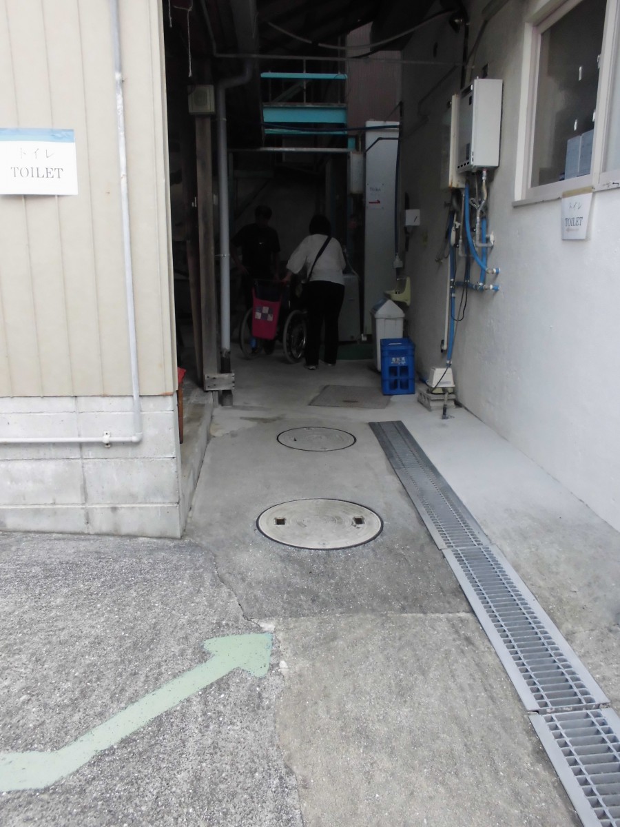 突き当たりにあるトイレ 入口に段差がない 車いすは入れない