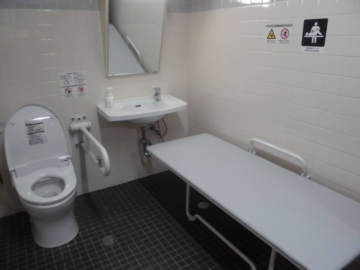 1階 多目的トイレ スライド回転扉で開け閉めしやすい