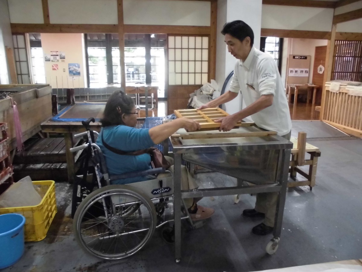 1階 紙すき体験コーナーにある車いす利用者用紙すき台