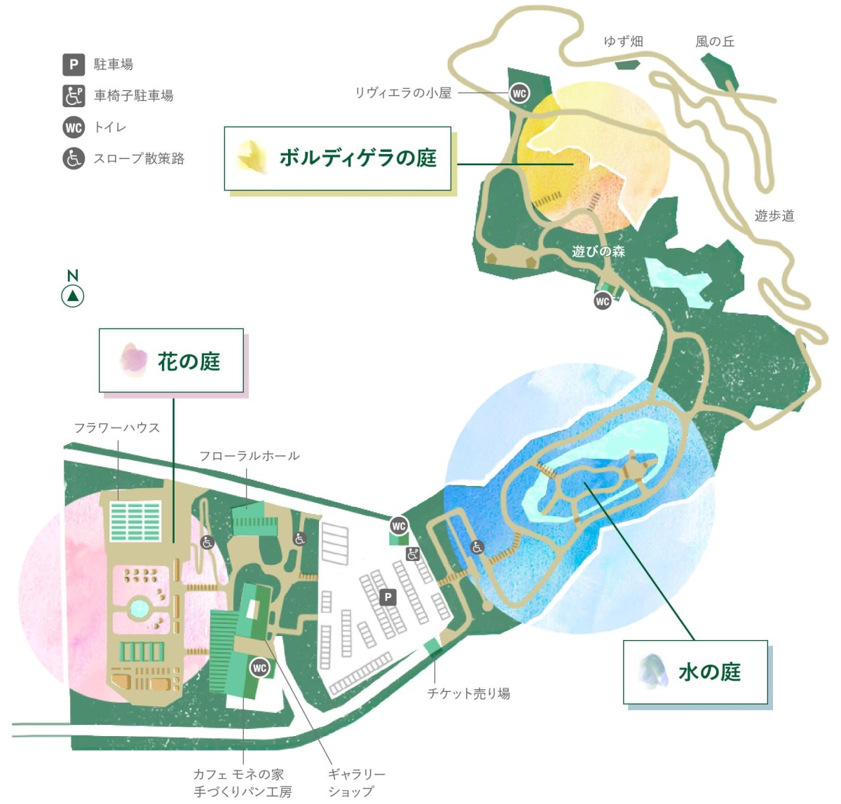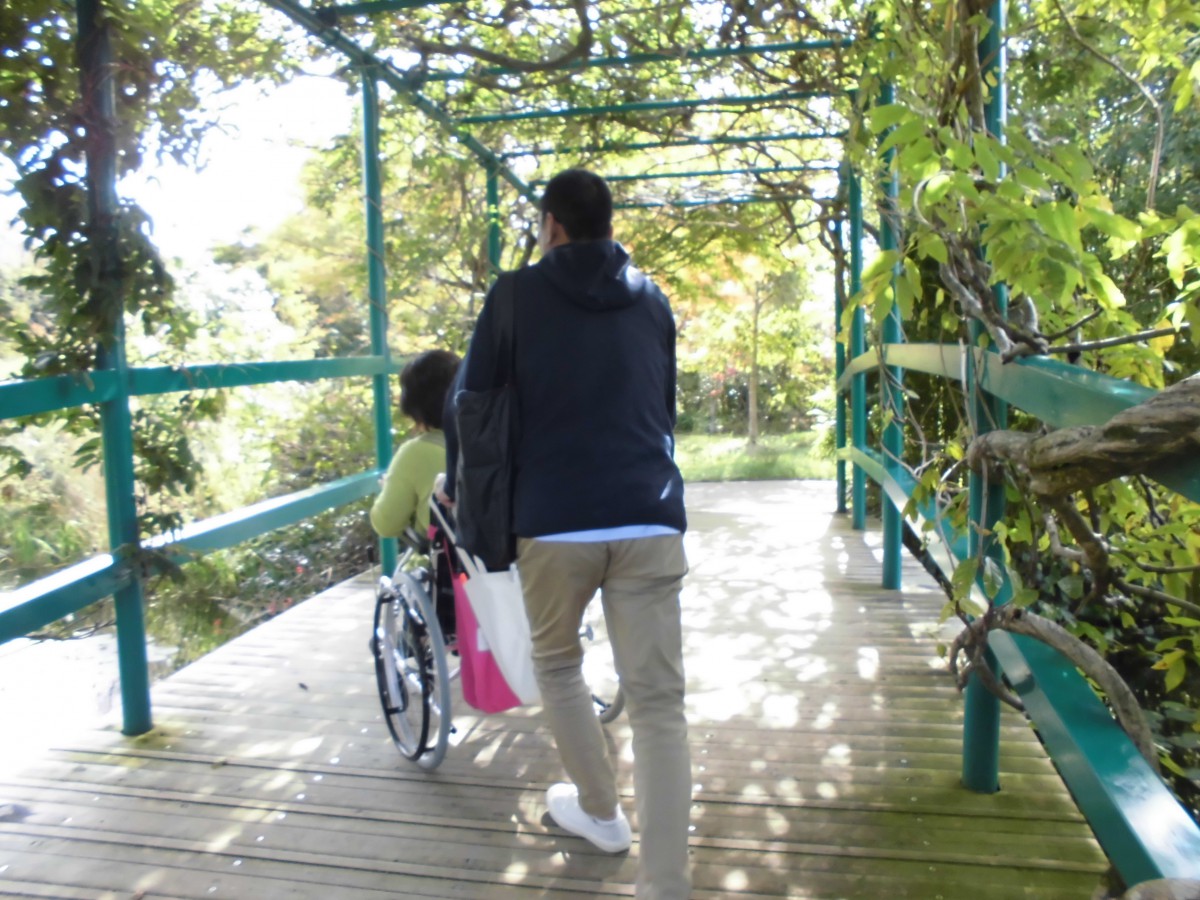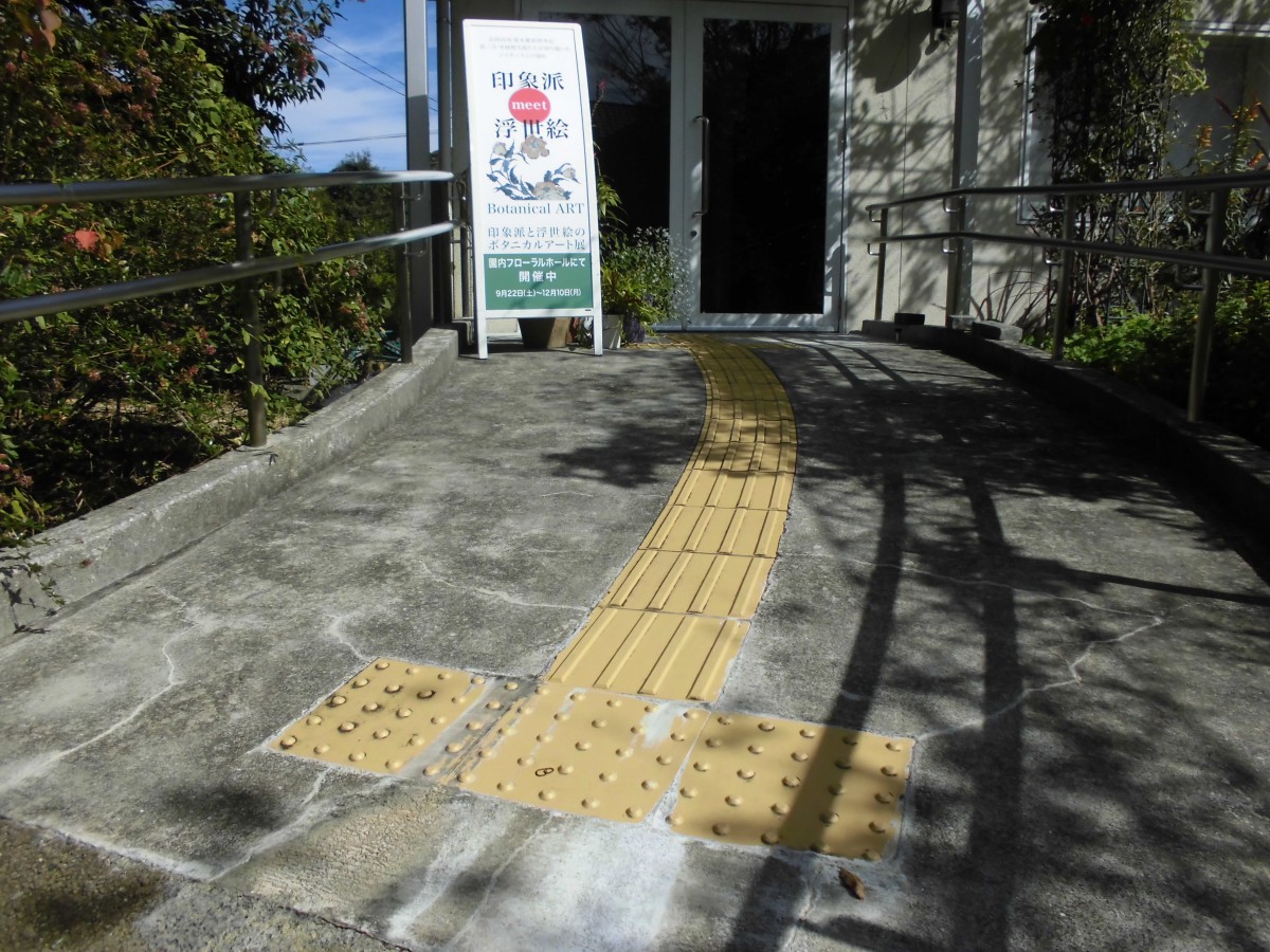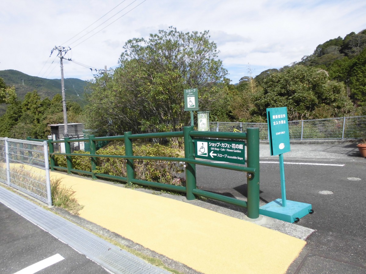 園内は傾斜がきつい箇所あり 車いすの場合、介助者2名以上が望ましい