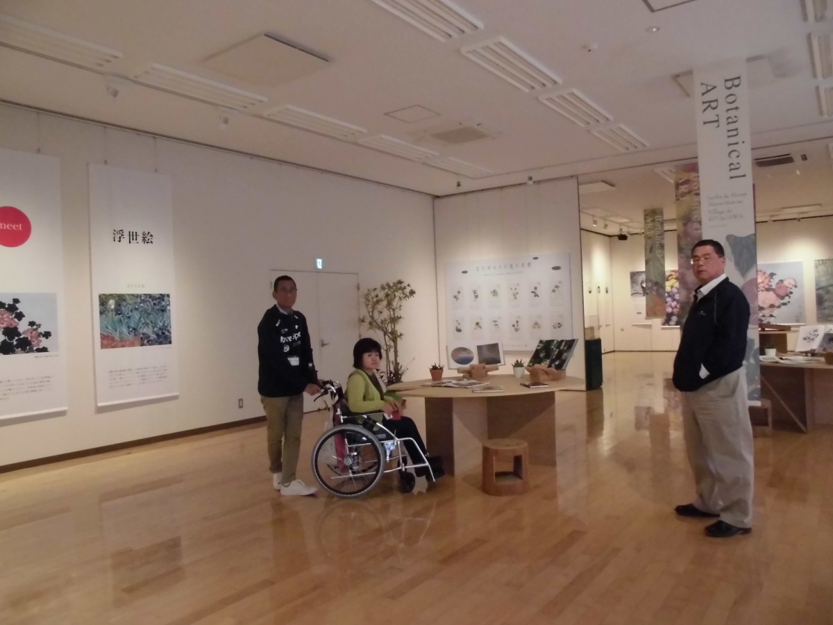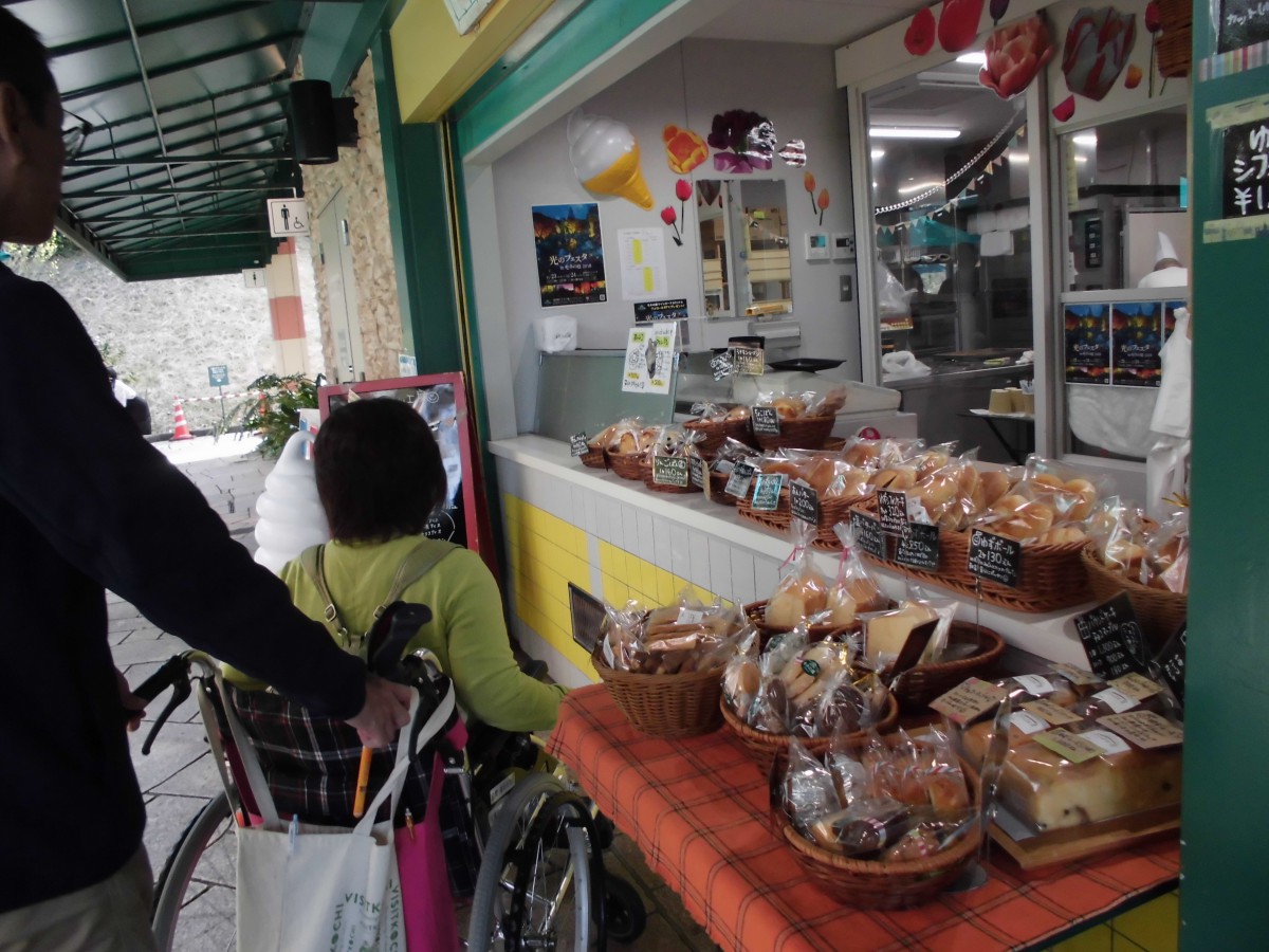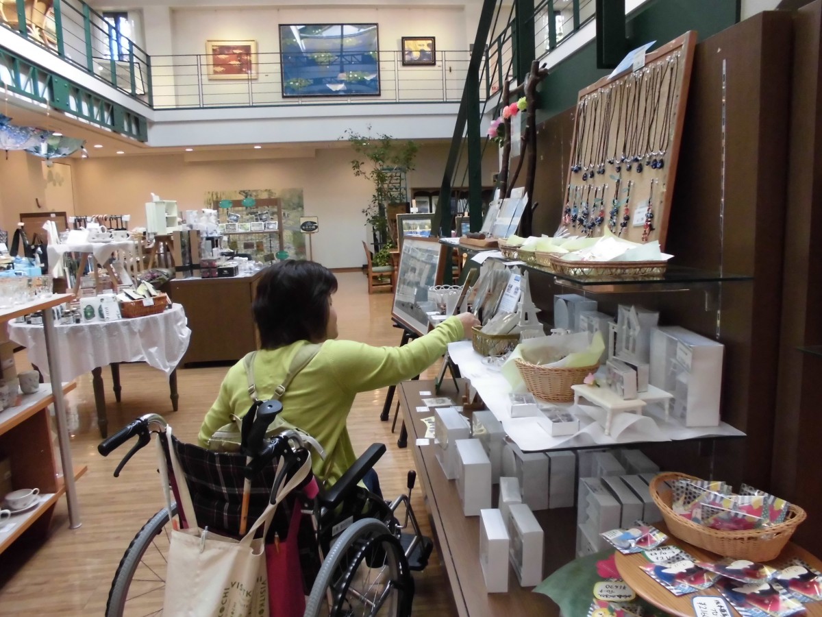 ギャラリーとショップのある建物にはエレベーターが無いため、1階・2階への移動は屋外のスロープを使って昇降