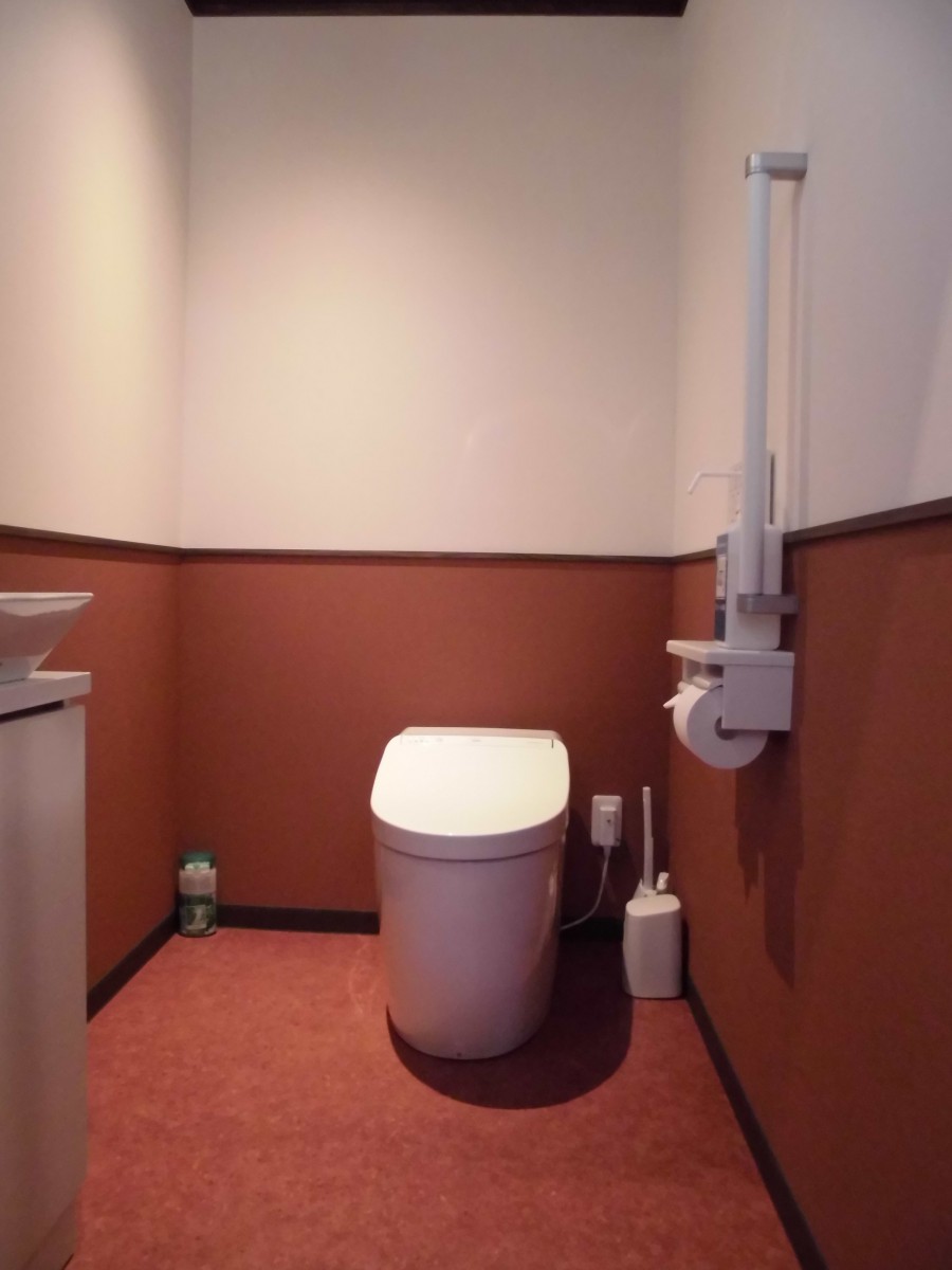 男女共用トイレ(リヴィエラの小屋) 右にI字の手すりあり