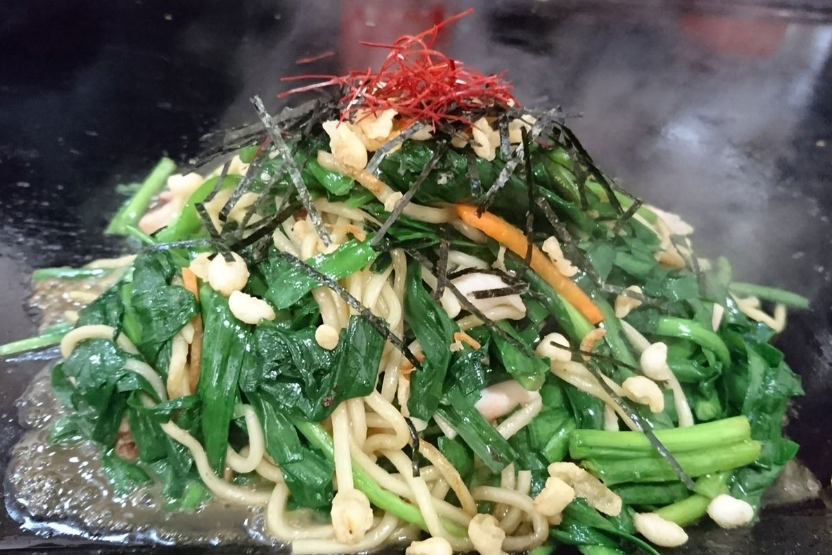 注文するとカウンターの目の前の鉄板の上でお店の方が作り始めました。まず、麺の量よりニラの方が多いことにびっくり! 特製塩だれで味付けされたニラ塩焼きそばは、ニラ独特の香りとシャキシャキの食感にお箸を持つ手が止まりません。