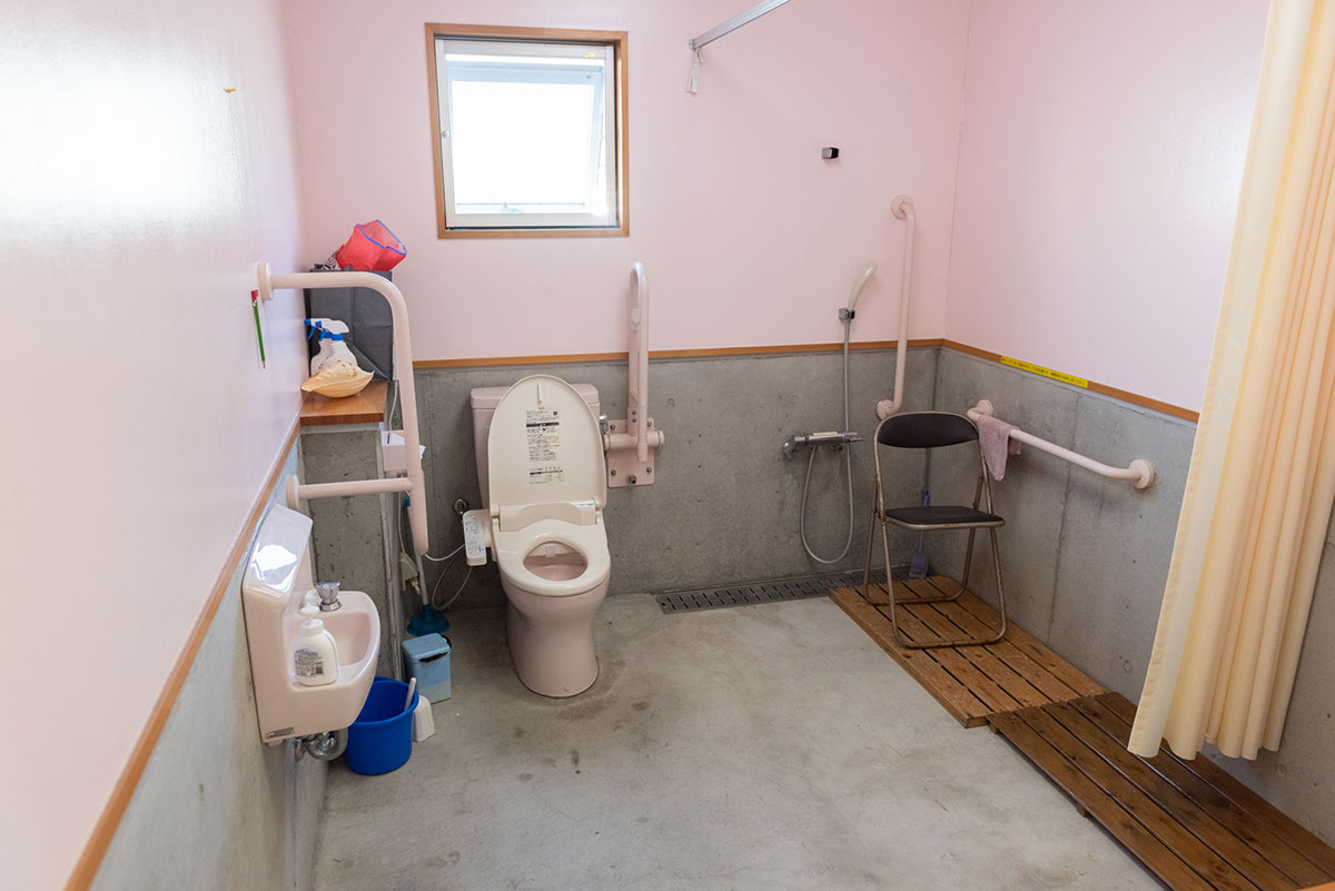 入口に10センチ程の段差があるので車いす利用者は介助が必要。店内はカウンター席と掘りごたつ席のみで、ニラ塩焼きそばなどニラが入っているメニューは店内での提供のみです。ニラが入っていないお好み焼きなどはテイクアウトが可能ですので近くのヤ・シィパークで食べるのもおすすめです。