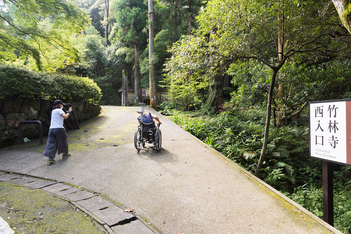 高知市五台山の四国霊場第31番札所、竹林寺は、高知県立牧野植物園のすぐ近くにあります。境内への入口は 2カ所あり、事前に連絡すれば、段差のない西入口(普段は閉鎖)を開けてもらえるので、こちらから入ることをおすすめ。砂利など、車いすなどでの通行が難しい箇所は、お寺の方に声をかければ可能な限りお手伝いあり。札所ということで、普段からお身体が不自由な方の参拝も工夫して受け入れをしており、今回も安心して参拝できました。境内には、車いす対応トイレも完備。
