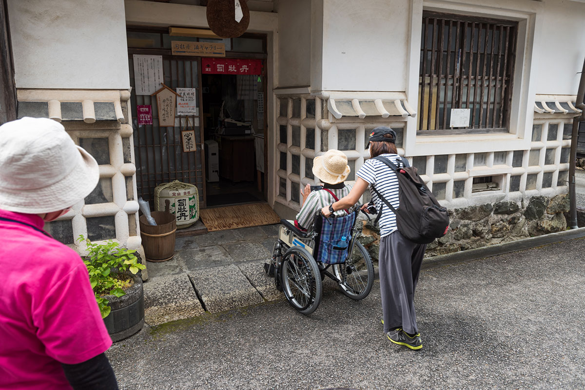 地元ガイドによるまち歩きガイドがあり、歴史散策コースをはじめ、牧野富太郎コースなどがありますが、今回は車いすで行きやすい場所を案内してもらいました。集合場所の地場産センターは階段のみになるので、観覧はしませんでしたが無料で見学できます。