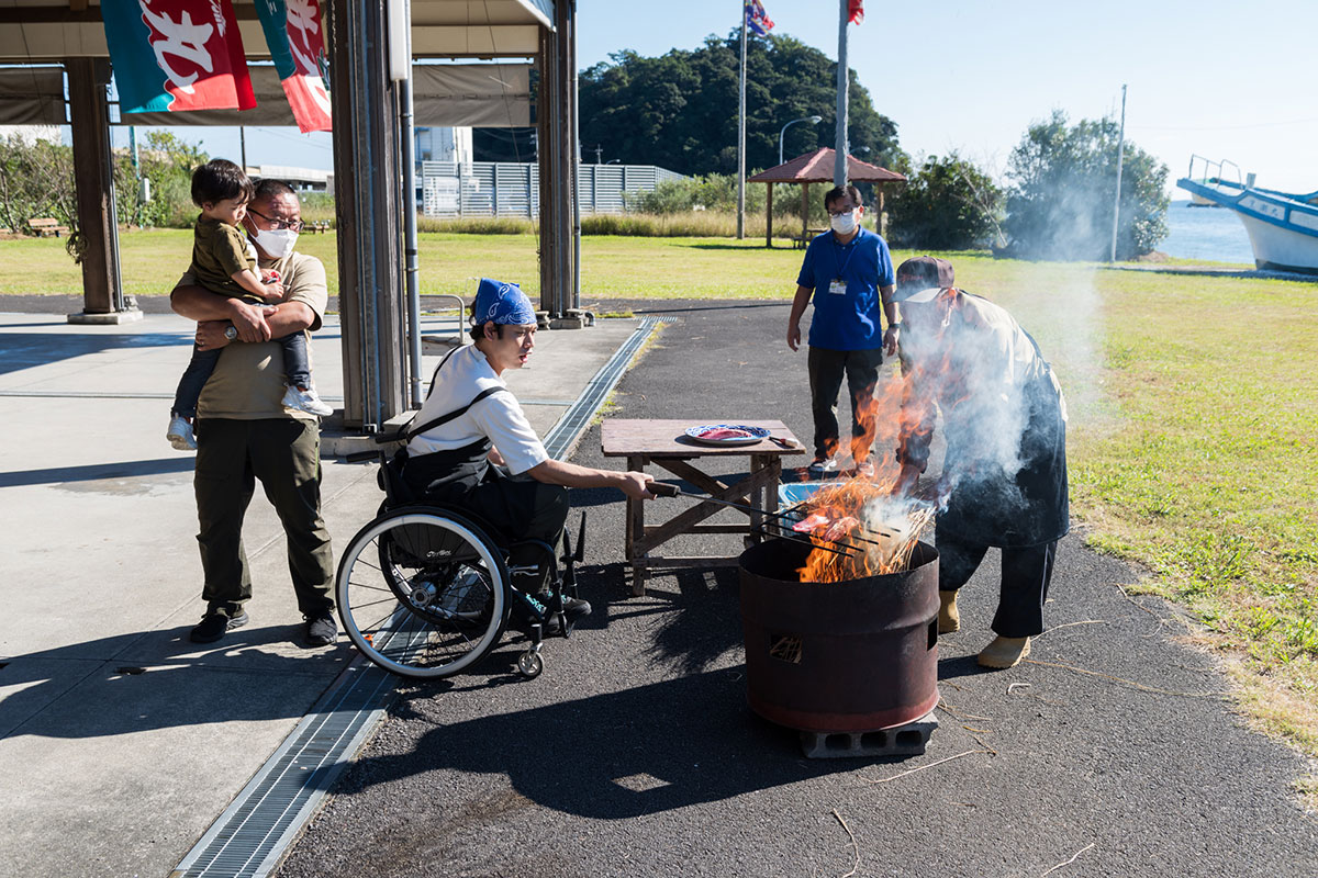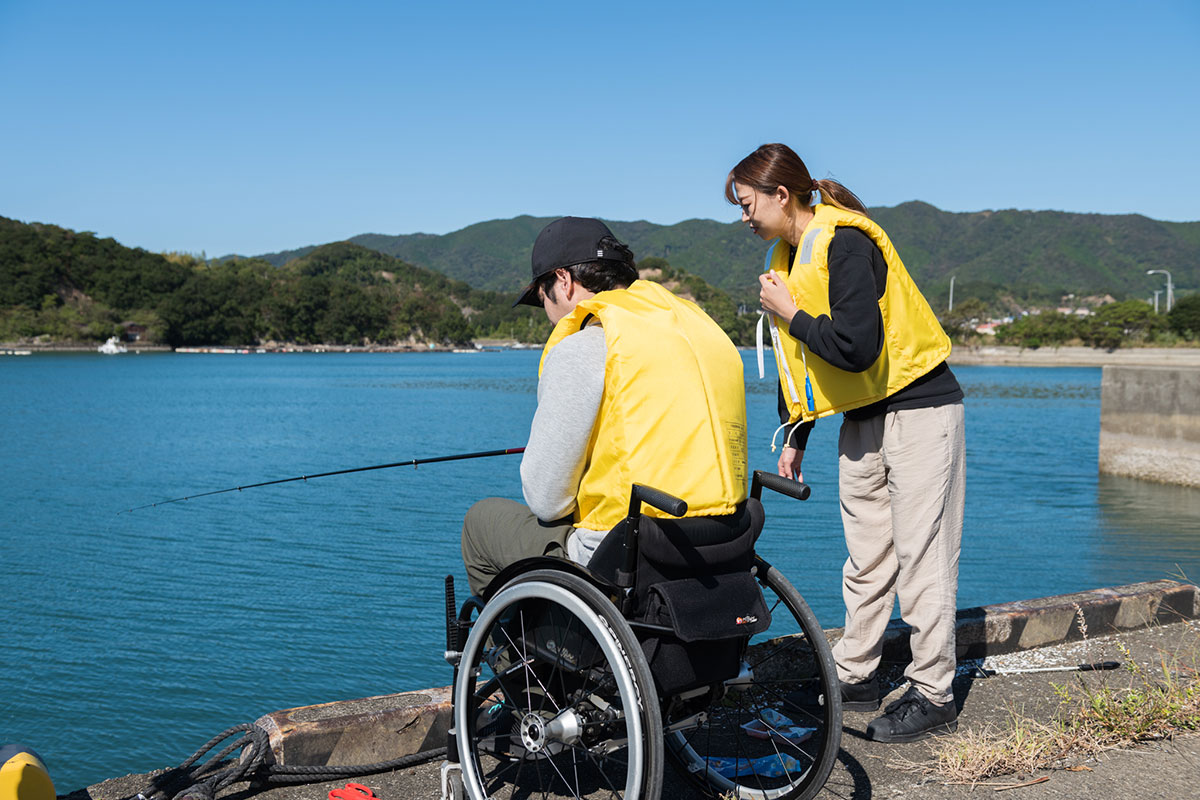 岸壁釣りなので、足場はフラット。車いすのまま釣りを楽しむことができました。