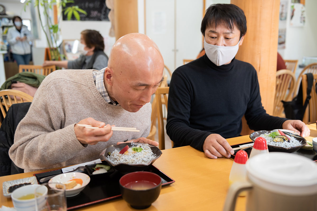 室戸市に向かう途中で「釜揚げちりめん丼」をいただくことにしました。太平洋でとれたドロメ(イワシ類の稚魚)を太平洋の前で天日干しして作られる「釜揚げちりめん」を使用したご当地丼。ご飯の上に釜あげちりめん、海苔、大根おろし、みょうがなどの薬味がのせられており、柚の酢をたっぷり使った特製タレをかけて食べます。ふわっとした釜揚げちりめんが最高です。