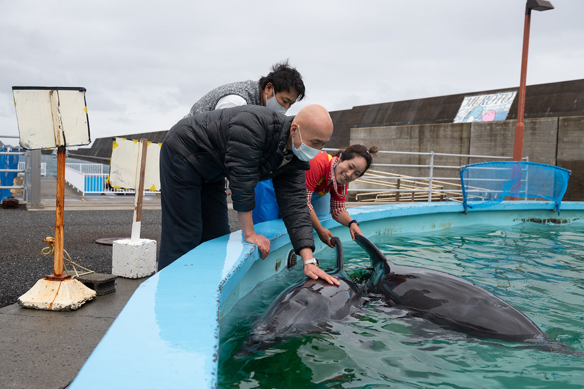 室戸ドルフィンセンターは見学だけではなく、イルカとふれあいができる体験メニューが豊富です。今回はイルカのエサやりやタッチ体験を行いました。途中イルカの大ジャンプにより、大量の水しぶきを浴びてしまうハプニングも! 思い出に残る貴重な体験でした。
